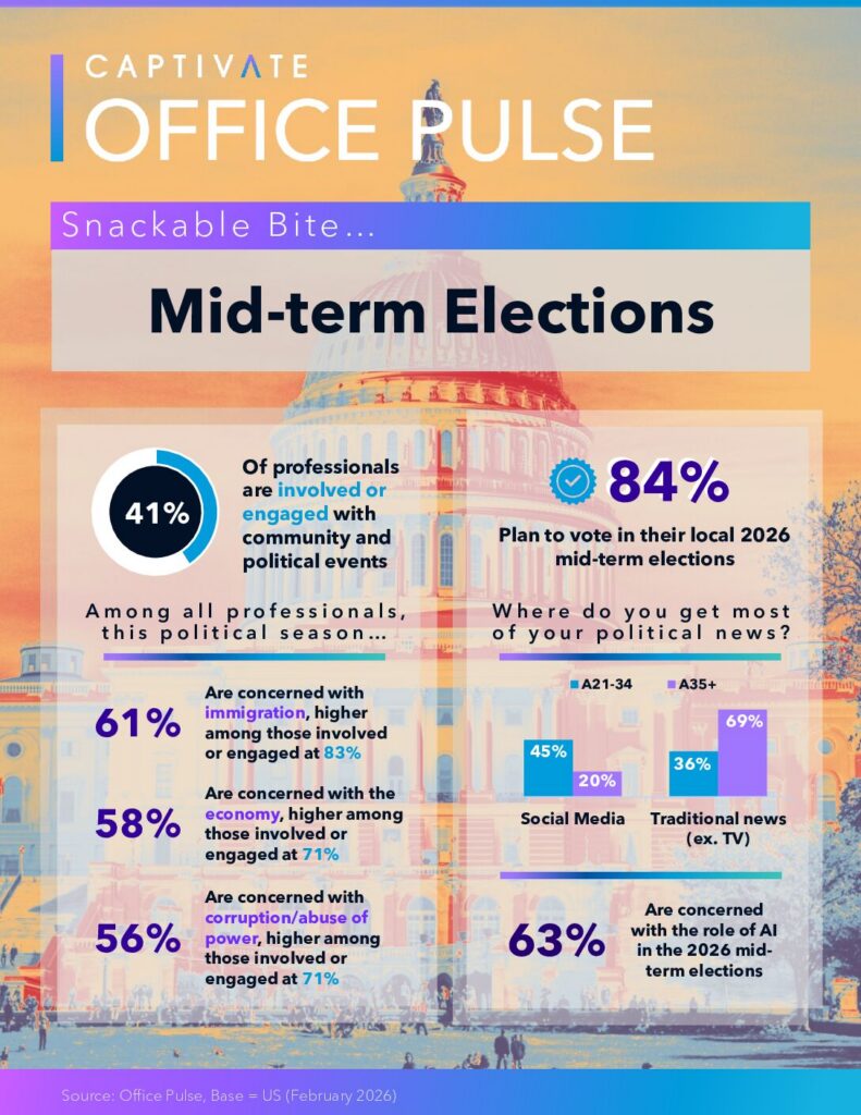 Our latest research explores the 2026 MID-TERM ELECTIONS, uncovering the issues professionals care about most, where they get their political news, and how actively they plan to participate in the 2026 elections.